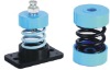 Application YDS spring mounts eliminates structural noise and vibration for floor mounted equipments, are typically used to reduce the transmission of noise and vibration from low speed mechanical equipment into a building structure. With proper selected and installed spring isolators offer the greatest assurance that destructive vibration and noise will be eliminated or greatly reduced. YDS spring mounts are highly effective for controlling of both high and low frequency vibration produced by rotary wheels and propellers like pumps, packaged air handling and air conditioning equipment, centrifugal and axial fans, and reciprocating compressors like chillers, air compressors and internal combustion engines, etc. Description --Structure High deflection, free-standing, unhoused, large diameter, laterally stable steel springs assembled into an upper load plate and leveling assembly. For lighter capacities, molded neoprene bottom load plates are furnished. For heavier capacities, springs are welded to the steel bottom load plate to which a neoprene isolation pad is attached. --The ratio of spring diameter to compressed height at rated load is not less than 0.8. --Springs are epoxy powder coated, with 1000-hour salt spray rating. --Neoprene friction pad acts as a sound break to minimize high frequency transmission. --Vibration isolation efficiency is over 95%. --Provisions on the bottom plates for bolting the isolator to the structure. --Lateral spring stiffness greater than 1.0 times the rated vertical stiffness to assure stability Provide a minimum of 50% overload capacity. Springs are safe at solid loading. --Provide a minimum of 50% overload capacity. Springs are safe at solid loading.
